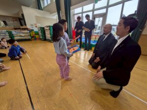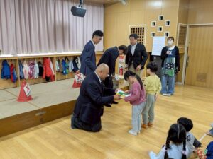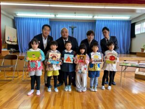 さて、先日投稿しました絵本寄贈の続報となりますが昨日23日に砂川天使幼稚園様、ひまわり保育園様、さくら保育園様、空知太保育園様の園児の皆さまのもとへ三共建具工業(株)様、(株)平尾電気商会様とご一緒に絵本をお届けさせて頂きました。